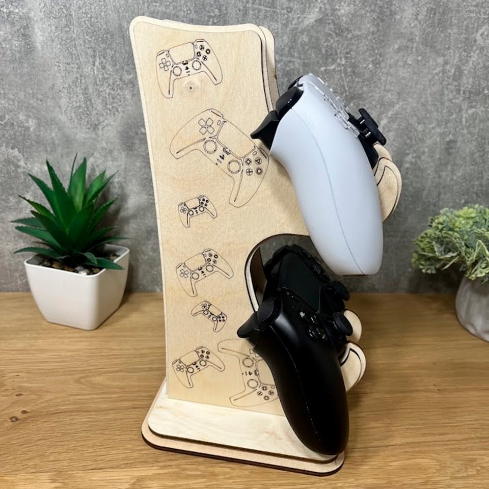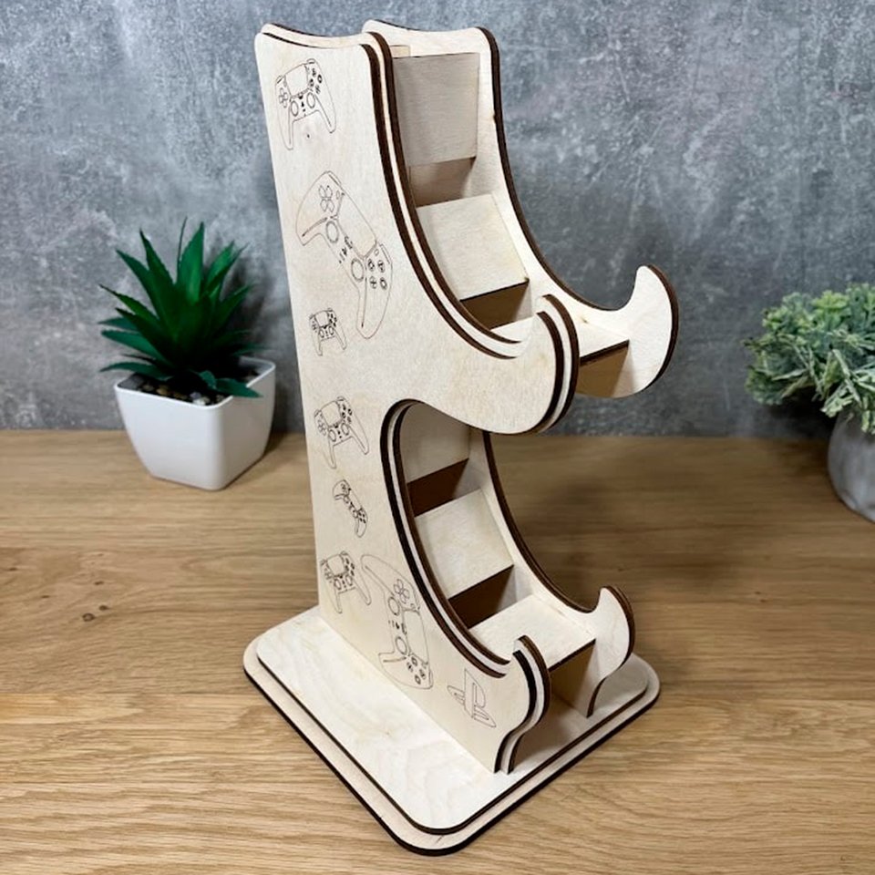 Organize your gaming space with style and convenience using our wooden gamepad stand!